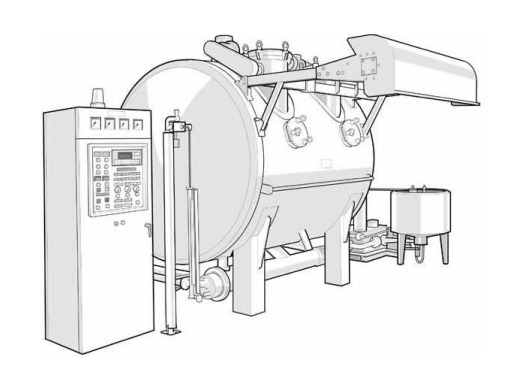 Figura 1. Tintorera de alta temperatura para tejidos con puertas con múltiples pernos